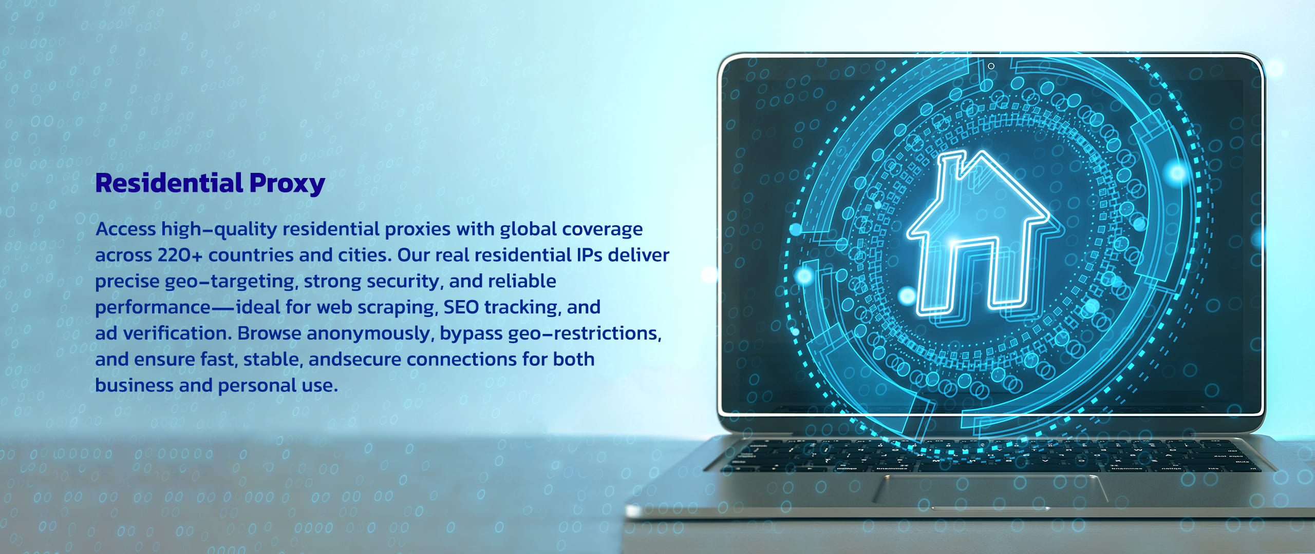 Раскройте полный потенциал ваших онлайн-операций с помощью наших резидентных прокси. Разработанные для профессионалов и бизнеса, наши Residential Proxy обеспечивают высокоскоростное соединение, надёжное гео-таргетирование и полную анонимность в сети. Независимо от того, требуется ли вам сбор данных (web scraping), мониторинг SEO, проверка рекламы или безопасное управление несколькими аккаунтами, наша сеть из более чем 210 глобальных локаций гарантирует, что вы всегда будете на шаг впереди конкурентов. Ощутите непревзойдённую гибкость и безопасность с решениями Residential Proxy, полностью адаптированными под ваши задачи.