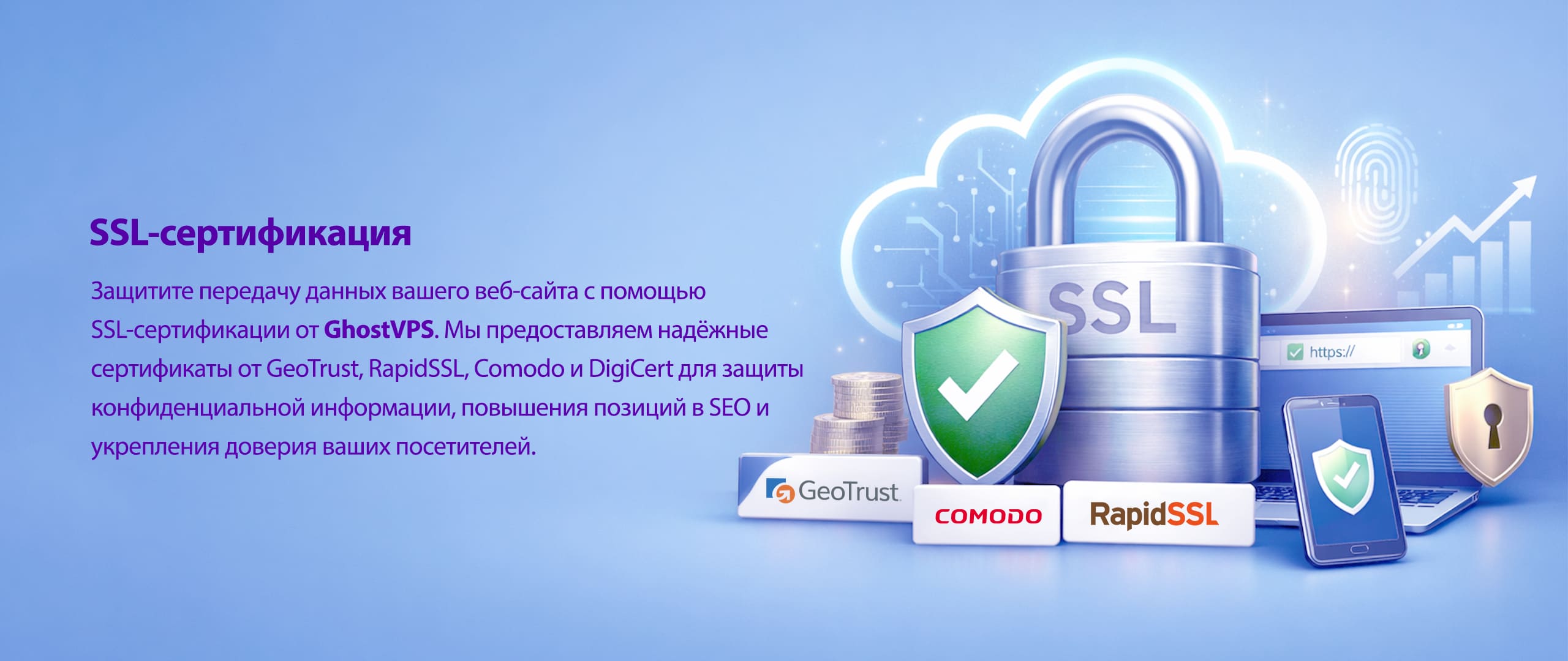 В GhostVPS мы предлагаем различные планы SSL-сертификатов, разработанные с учетом потребностей личных веб-сайтов, малых предприятий и крупных организаций. Каждый план предоставляет надежное шифрование 256-бит, обеспечивая конфиденциальность и защиту всех данных, передаваемых между вашим сайтом и его посетителями, от несанкционированного доступа. Независимо от того, ищете ли вы быстрый и доступный вариант или комплексное решение с более высокими гарантиями и расширенной валидацией, мы обеспечим вашу безопасность.