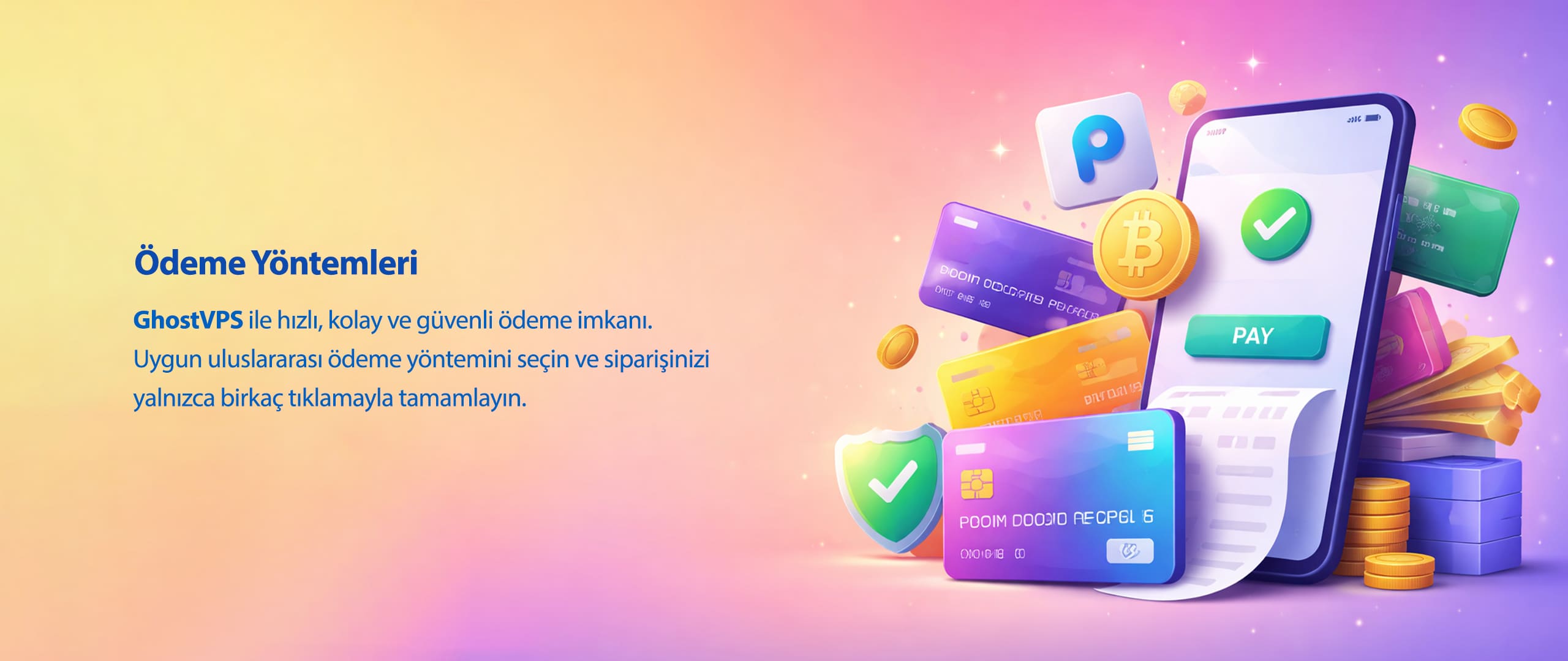 GhostVPS ile hızlı, güvenli ve uluslararası ödemelerin keyfini çıkarın. Kredi kartı, PayPal ve kripto seçenekleriyle ödeme yapabilirsiniz.